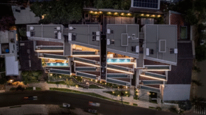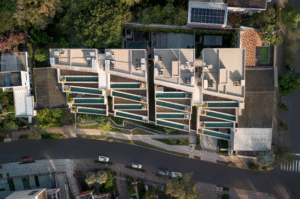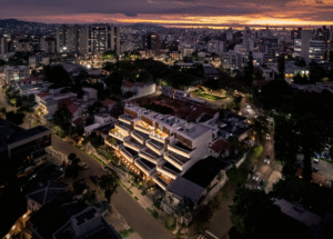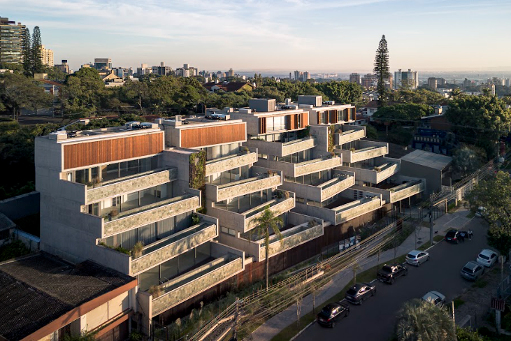 Situado em um bairro bucólico e majoritariamente residencial unifamiliar, o Cap. 1 Três Figueiras é um empreendimento que propõe o conceito de casas suspensas.