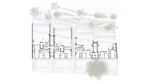 O terreno em questão, em aclive, possui a presença de uma das Figueiras que dão nome ao bairro Três Figueiras. Como premissa do projeto, todas as unidades são dispostas de frente, garantindo as orientações leste e oeste, além de visuais para a notável árvore.