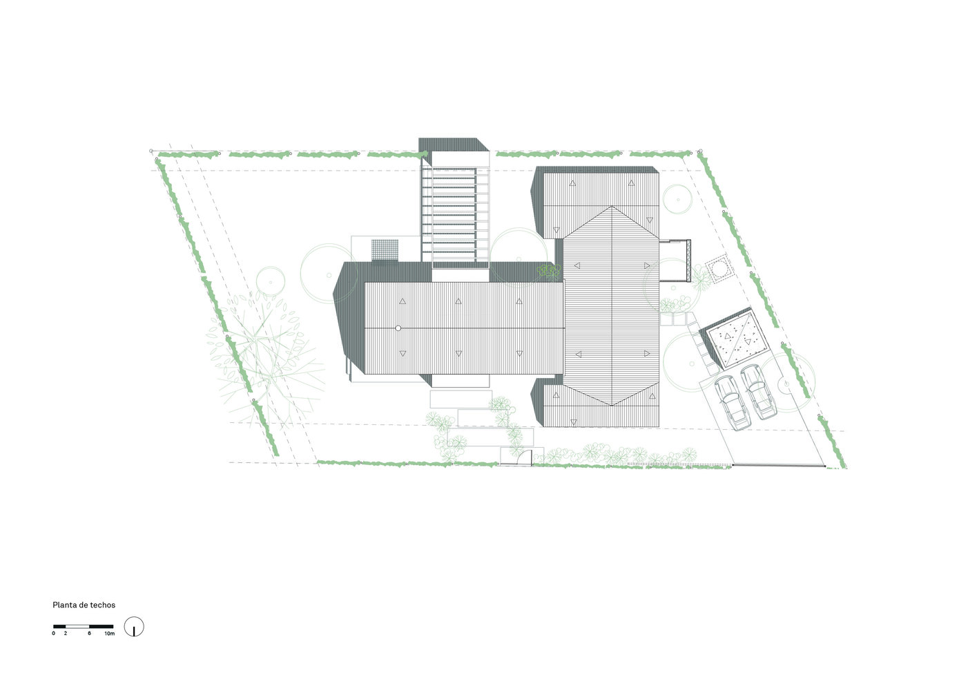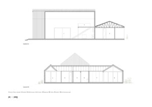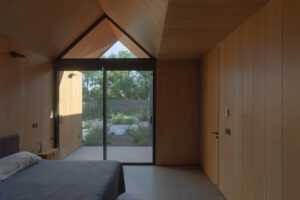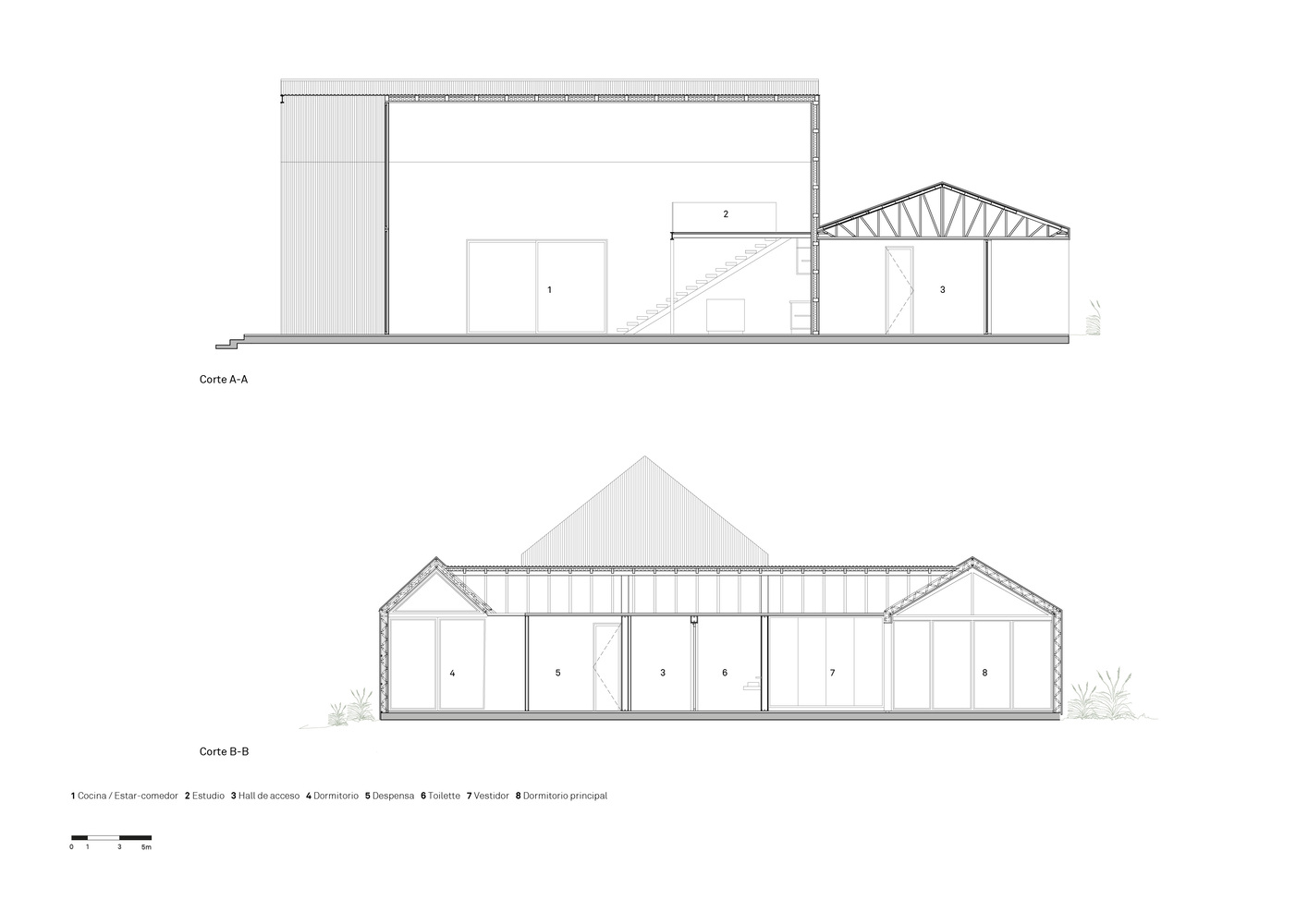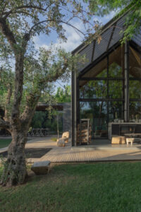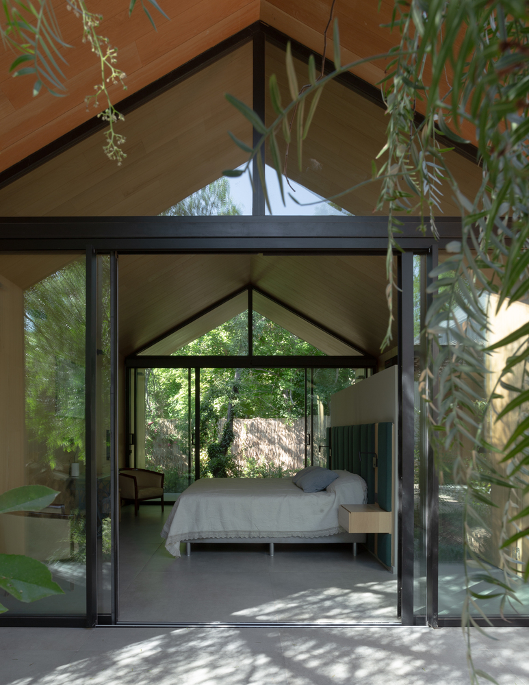 O projeto se destaca pela sua composição fragmentada, que consiste em uma série de volumes com telhado de duas águas construídos com uma robusta estrutura metálica. Essa abordagem não apenas define diferentes áreas de uso, mas também reforça a conexão visual e espacial com o entorno. A Casa da Flecha é mais do que uma moradia tradicional; é um retiro contemporâneo que equilibra força e leveza, oferecendo uma experiência de vida flexível e em íntima relação com a natureza.