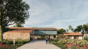 A escolha do sistema construtivo em madeira engenheirada vem ao encontro da concepção de uma arquitetura com reduzida pegada de carbono. O projeto consiste em um sistema construtivo onde vigas e pilares de madeira laminada colada de pinus e uma cobertura de telhas cerâmicas são responsáveis pela limpa e ágil construção. A pré-fabricação das peças confere um nível de industrialização interessante para o projeto ao mesmo tempo que aumenta o nível de sustentabilidade da edificação.