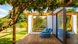 A Casa Muxarabi é parte do projeto de uma construção que totaliza mais de 600m2 e que ainda não foi construída na sua totalidade. Pensada como uma casa para hospedar amigos e familiares, hoje abriga o casal e seus dois filhos, até que a casa principal seja construída.