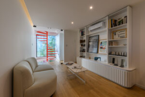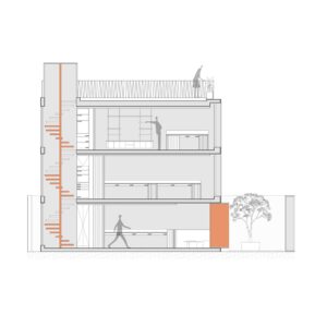 Implantado em um contexto urbano consolidado, o estúdio trabalha a relação entre interior e exterior de forma controlada, filtrando luz, vistas e ruídos. A arquitetura não busca protagonismo através da forma, mas através da organização precisa dos espaços e da escolha dos materiais.