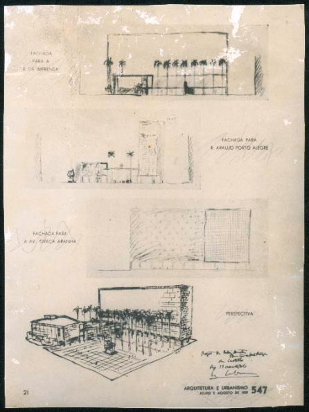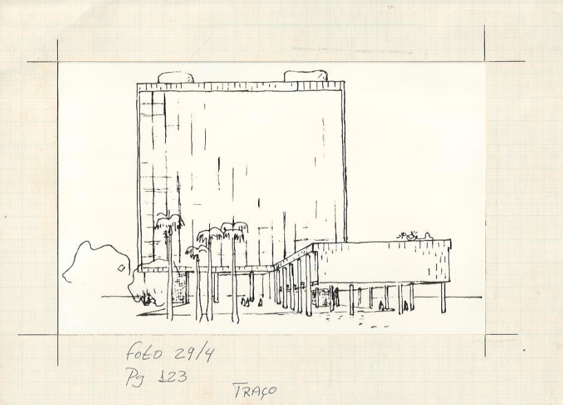 O terraço-jardim, com espécies tropicais, cumpre funções de conforto térmico e de uso coletivo, enquanto a planta livre favorece a flexibilidade dos ambientes internos — conceito precursor do design corporativo contemporâneo.