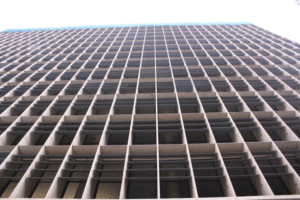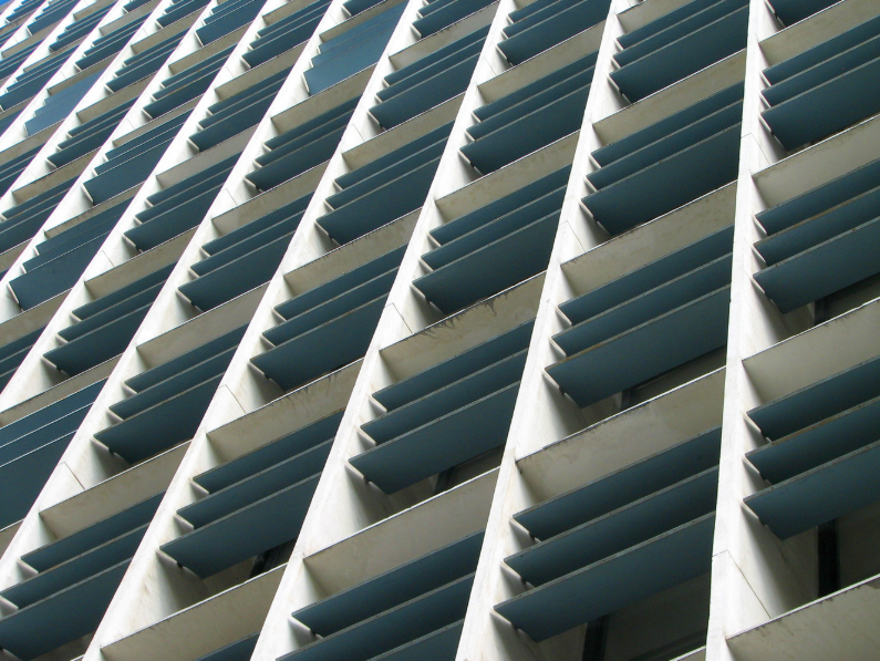 O projeto também introduziu uma inovação fundamental: a fachada ventilada com brises verticais de alumínio, projetados para se adaptar ao movimento solar, controlando a incidência de luz e o ganho térmico — um recurso que antecipou discussões contemporâneas sobre eficiência energética e conforto ambiental